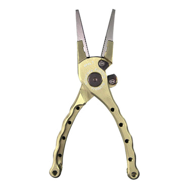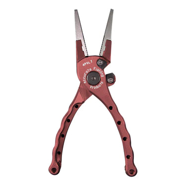 The Accurate Piranha Pliers are made in the USA. They are made from lightweight 6061 Aluminum contruction with an anodized finish. Both the carbide jaws and carbide cutters are replaceable. These pliers cut through braid and mono with ease. The pliers also feature an ergonomic design for easy grip comfort and are spring loaded.
