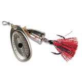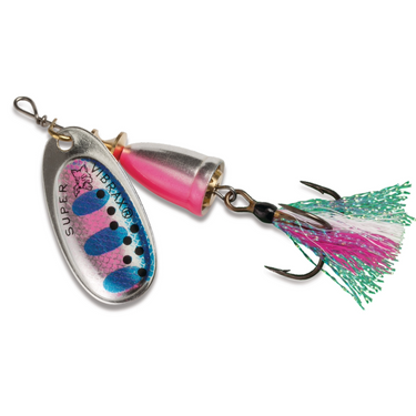 45 degree Mid depth blade runs 2 feet to 4 feet. The patented two-part body emits low-frequency sound vibrations that attract fish and trigger strikes while virtually eliminating line twist. Calf tail mixed with shiny colored fibers hackle adds to the attraction.