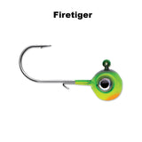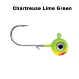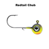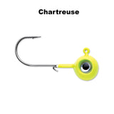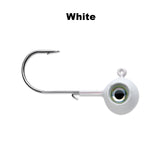 This VMC® upgraded version of the traditional Aspirin-shaped heads provides added control. 3-D holographic eyes create the illusion of a wider profile while adding realism. Assembled with a VMC® Premium high-carbon steel hook with top of the line black nickel finish. The wide range of colors includes UV Bright finish colors that guarantee you to catch more fish in all water conditions.