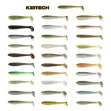 The Keitech FAT Swing Impact redefines swimbait performance. Keitech's revolutionary two-tone injection process uses several different types of salted plastics to achieve perfect balance & action. The most impressive feature of these great swim baits is the ability to maintain a perfect swimming motion at any retrieve speed. The tapered design ringed body distorts the shape to a more natural appearance. The center rigging line provides the perfect position to ensure the bait is rigged correctly. The Fat Swing Impacts are packaged in blister packs to help protect the integrity of the baits. Available in 5 different sizes & the latest colors.
