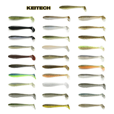 It's a real versatile performer. Swim the no sinker rig in shallow water, flip or pitch the Texas rig to various cover, and fish deep water structure with the jig head. The 3.8” is a great trailer for our Model I Tungsten Casting jig. - The 4.3" Keitech FAT Swing Impact has 5 baits per blister pack.