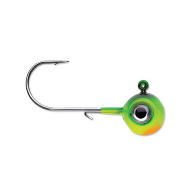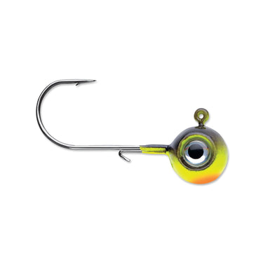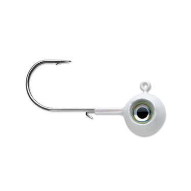 This VMC® upgraded version of the traditional Aspirin-shaped heads provides added control. 3-D holographic eyes create the illusion of a wider profile while adding realism. Assembled with a VMC® Premium high-carbon steel hook with top of the line black nickel finish. The wide range of colors includes UV Bright finish colors that guarantee you to catch more fish in all water conditions.