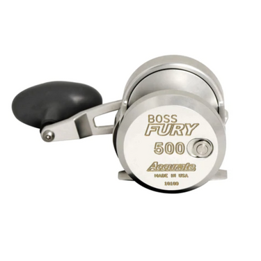 Accurate Fishing Products, originator of the patented TwinDrag® reels, has entered the single drag market with the introduction of the “Boss Fury” line of reels. These reels, like their “Boss Extreme” counter parts, are made of 6061 T6 billet aircraft aluminum for lightweight and strength. They feature a very simplistic design with stainless steel gears, wet drag for smoothness, and an ergonomic rubber handle that fits perfectly in your hand. They come with a brushed aluminum finish, are lighter, more comfortable, and very easy to use. These reels were designed with fishermen’s needs in mind. If you are chasing bullet tuna, schoolie dolphin, or trying to catch your first white sea bass, the Boss Fury has a size to meet your fishing needs at an affordable price.