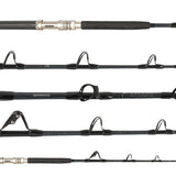 Keeping up with the light weight reels today, the Shimano Tallus rod series, with its unique carbon butt section shaves off an incredible amount of weight while maintaining great strength. They feature Aftco roller stripper and tip guide with Fuji Aluminum Oxide guides in between. EVA front grips with a custom shape to make it comfortable to pull on monster fish.