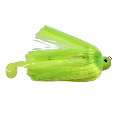 Mojos are magic! One of the best lures to troll for striped bass off the east coast. Troll as a solo lure or as part of a tandem rig, these mojo jigs come in sizes from 2 ounces to 32 ounces, and in two colors, white or chartreuse. Round lead heads with eyes rigged with a quality Mustad hook, nylon parachute skirt, and a soft plastic swim shad. Striped bass cannot resist.