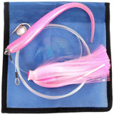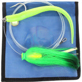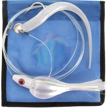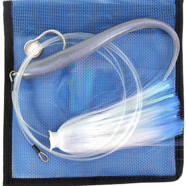 Made and rigged by hand in the USA, the MagicTail Hoo Magic Soft Plastic Rigged Trolling Heads are the perfect go-to rig for offshore trolling. The beautiful Hoo Magic Trolling Heads feature large, realistic bug out eyes that provide a swimming action that is second to none and ensure that the bait always swims black back up. They feature durable paint jobs and quality mylar skirts. Heads are rigged with 150lb fluorocarbon leader, an 8/0 Quick Rig hook, and stainless chafe gear. They also feature a Gravity Tackle 9.5in soft plastic eel trailer that adds a lifelike action to your presentation. Each rig includes its own durable mesh lure bag.
