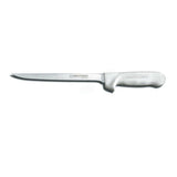 Built to be both tough and sanitary. A textured, slip-resistant, easy-to-clean polypropylene handle withstands both high and low temperatures. An impervious blade-to-handle seal provides the utmost in sanitary qualification. Stain-free, high-carbon steel blade, with an individually ground and honed edge, excels in commercial use. Made in USA. Items marked with the NSF logo are NSF Certified.