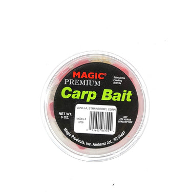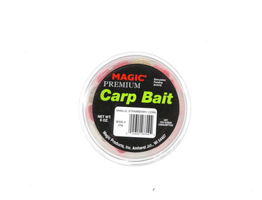 Magic® Premium Carp Bait is a great choice for instigating a memorable fight with those often-overlooked, broad-shouldered fish. This 100% biodegradable fish bait is formulated to retain its natural color and stay on the hook while releasing its powerful carp-attracting scent through the water. Mixed includes vanilla, corn and strawberry flavors. 6 oz.