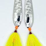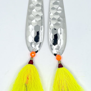 Custom-made Doormat Fluke Hi-Lo Double Spoon Rig, with bucktail teasers, for targeting in-shore fluke and off-shore double-digit doormats.