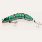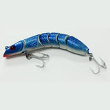 on the forces placed upon it. When cast, air pressure collapses the interlocking sections, when retrieved hydraulic forces expand the lures segments/joints giving an incredible swimming action. This unprecedented lure design gives the fisherman